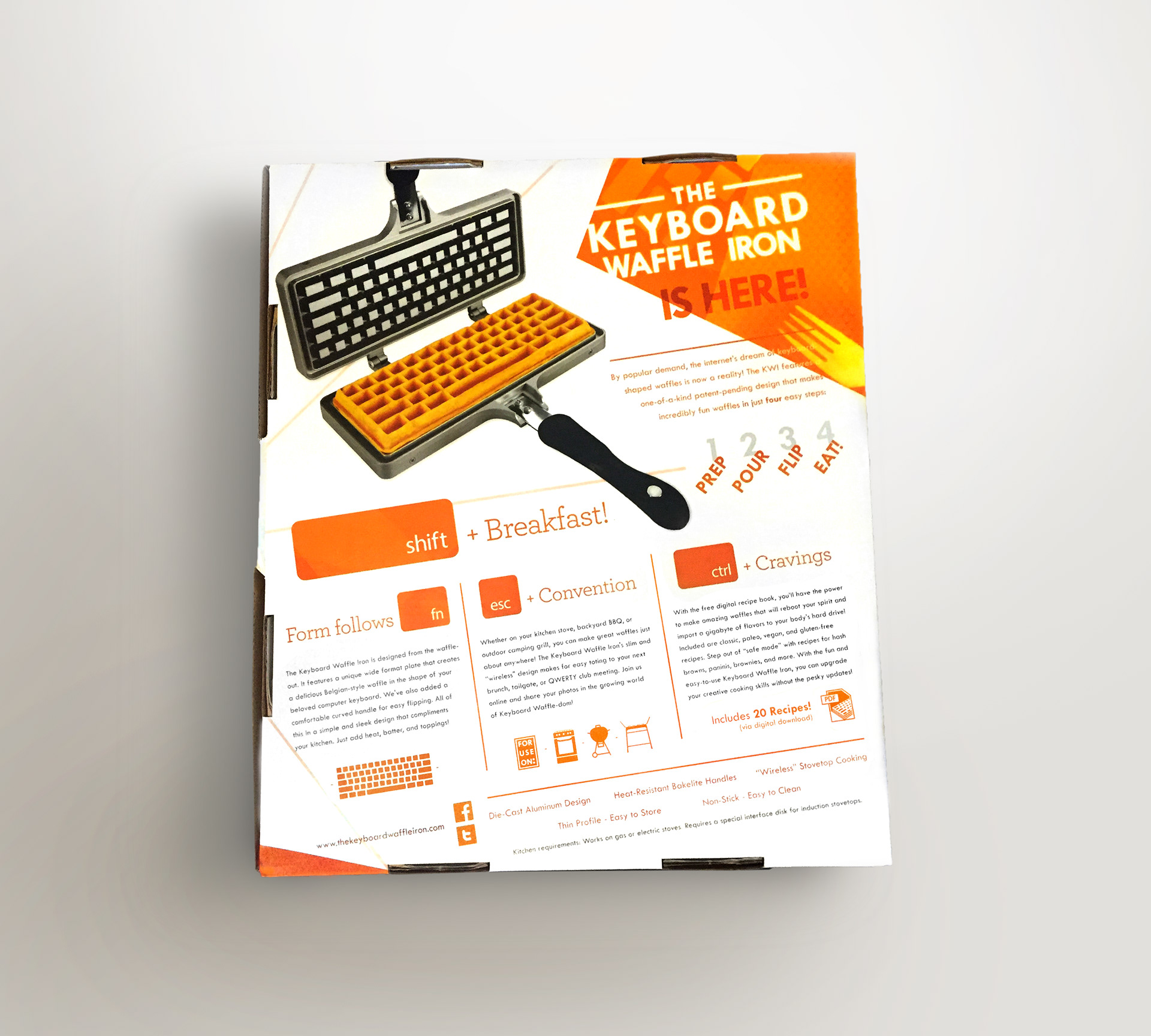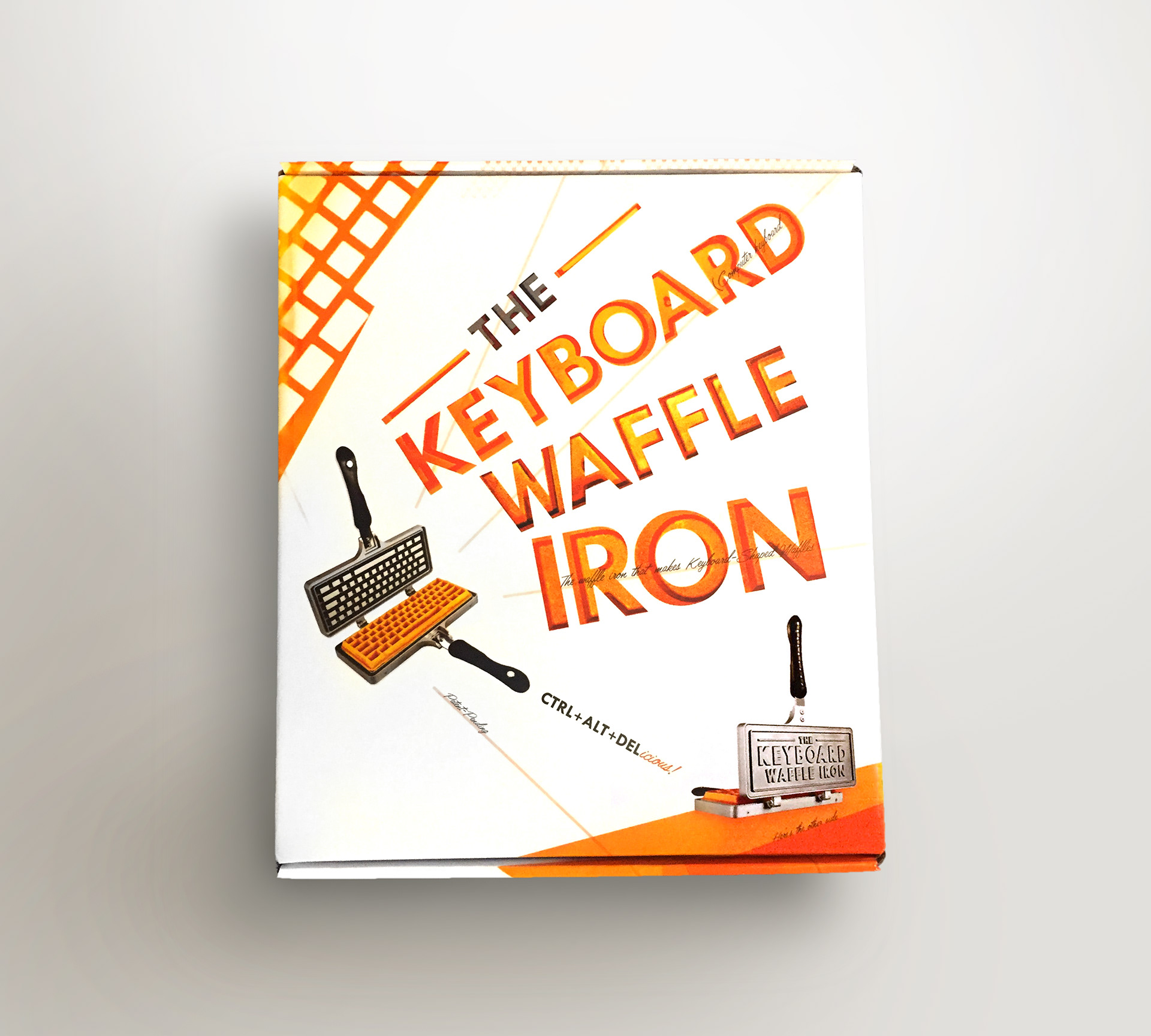 Package Design for The Keyboard Waffle Iron. Box measures: 14.5" x 12.25" x 3"